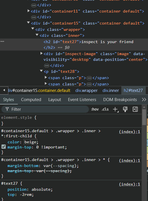 The "Inspect" feature is an essential tool for anyone building or maintaining a Carrd website. It allows you to understand the structure and behavior of your site, troubleshoot problems, test new ideas, and fine-tune custom features. While Carrd’s editor is user-friendly, using Inspect adds an extra layer of control and flexibility for those looking to optimize their website or implement advanced features.By becoming familiar with Inspect, you can enhance the functionality, design, and performance of your Carrd website, making it a powerful tool for web creators of all levels.