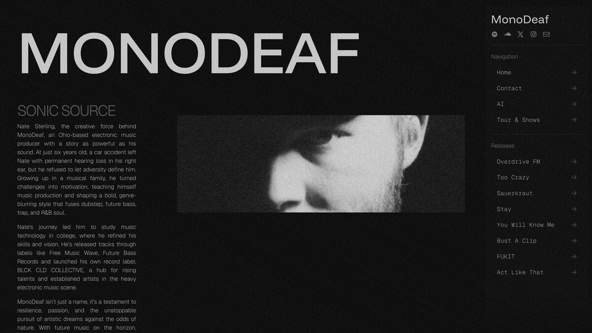 MonoDeaf is the project of half-deaf underground electronic producer, Nate Sterling, known for blending heavy bass with experimental elements that showcase resilience and unique artistry.